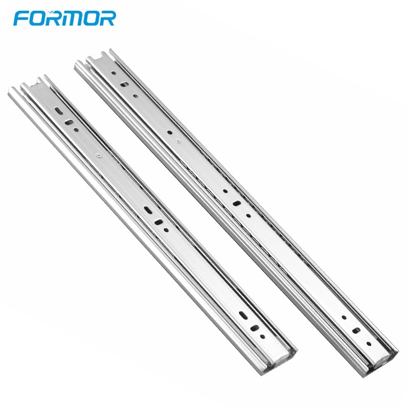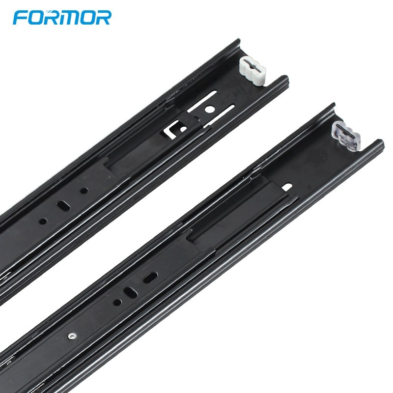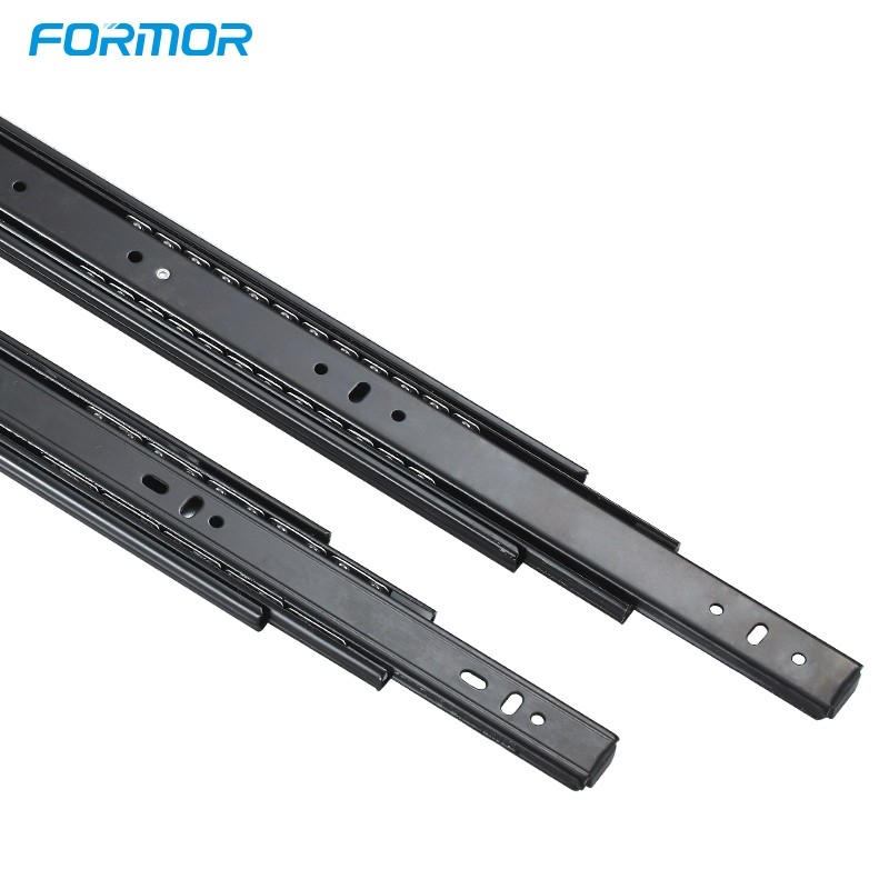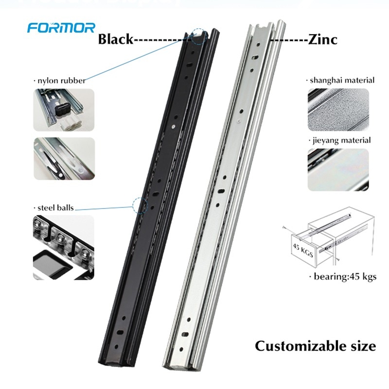 تصميم منزلق درج تلسكوبي 45 مم : تم تصميم الهيكل التلسكوبي بعرض سكة يبلغ 45 مم، مما يسمح بالتمديد والسحب السلس، وهو مناسب لتطبيقات الأدراج المتوسطة إلى الثقيلة.