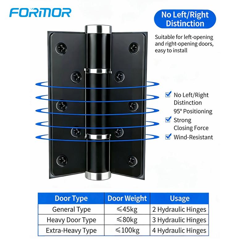 سرعة وقوة إغلاق قابلة للتعديل : يمكنك بسهولة تخصيص سرعة وقوة الإغلاق لتتناسب مع وزن الباب واحتياجات الاستخدام.