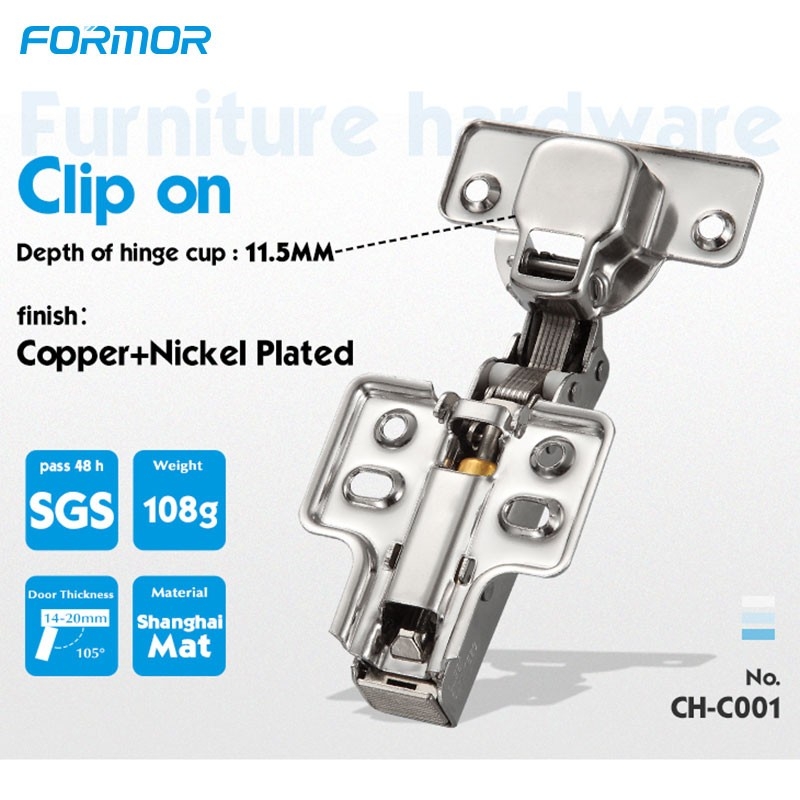 قطر رأس الكأس القياسي 35 مم : تم تصميم هذا المفصل بقطر رأس كوب يبلغ 35 مم، وهو يلتزم بالمواصفات القياسية للصناعة، مما يضمن التوافق مع مجموعة واسعة من أبواب الخزائن وقوالب الحفر. تصميم مشبك مسطح لتثبيت آمن بفضل تصميم الإبزيم المسطح، يوفر هذا المفصل اتصالاً آمناً ومستقراً بين الباب والخزانة، مما يعزز المتانة العامة ويضمن الموثوقية على المدى الطويل في الاستخدام اليومي. |