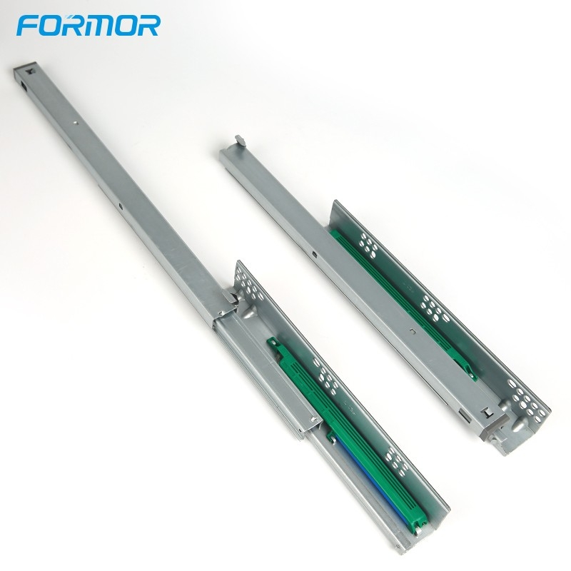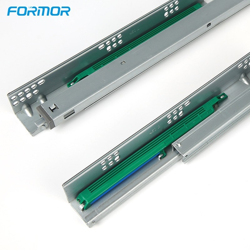 تصميم مخفي تحت السطح : يتميز بهيكل مخفي بالكامل أسفل السطح، مما يحافظ على آلية الانزلاق بعيدة عن الأنظار تمامًا، ويحافظ على المظهر النظيف والبسيط للخزائن مع الحفاظ على سلاسة تشغيل الأدراج.